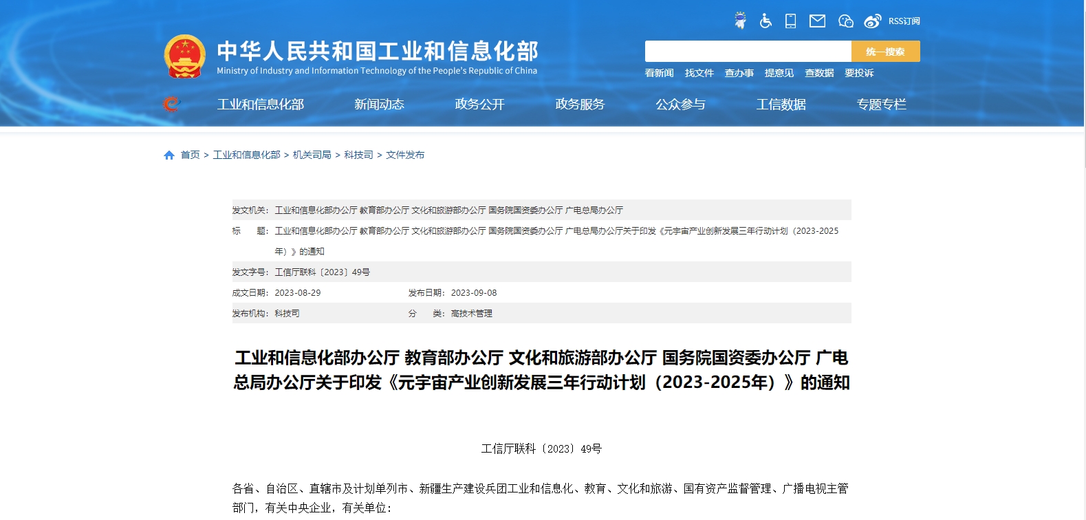 9月8日,工業(yè)和信息化部辦公廳、教育部辦公廳、文化和旅游部辦公廳、國務(wù)院國資委辦公廳、廣電總局辦公廳印發(fā)《元宇宙產(chǎn)業(yè)創(chuàng)新發(fā)展三年行動計劃(2023-2025年)》。