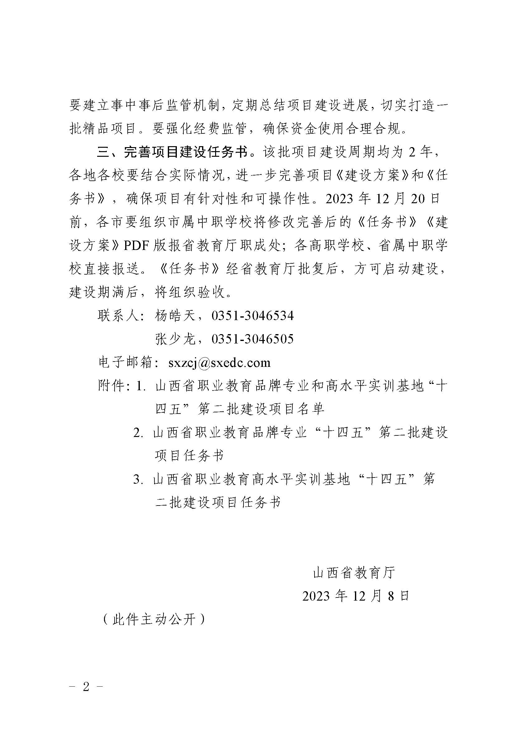 近日,山西省教育廳公布山西省職業(yè)教育品牌專業(yè)和高水平實(shí)訓(xùn)基地“十四五”第二批建設(shè)項(xiàng)目名單的通知,高職學(xué)校38所,中職學(xué)校71所,10個(gè)自籌項(xiàng)目。