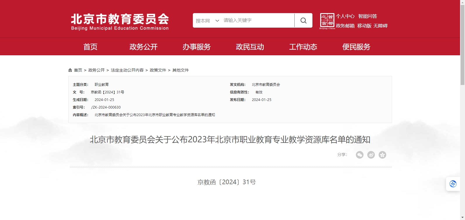 2023年北京市職業(yè)教育專業(yè)教學資源庫名單