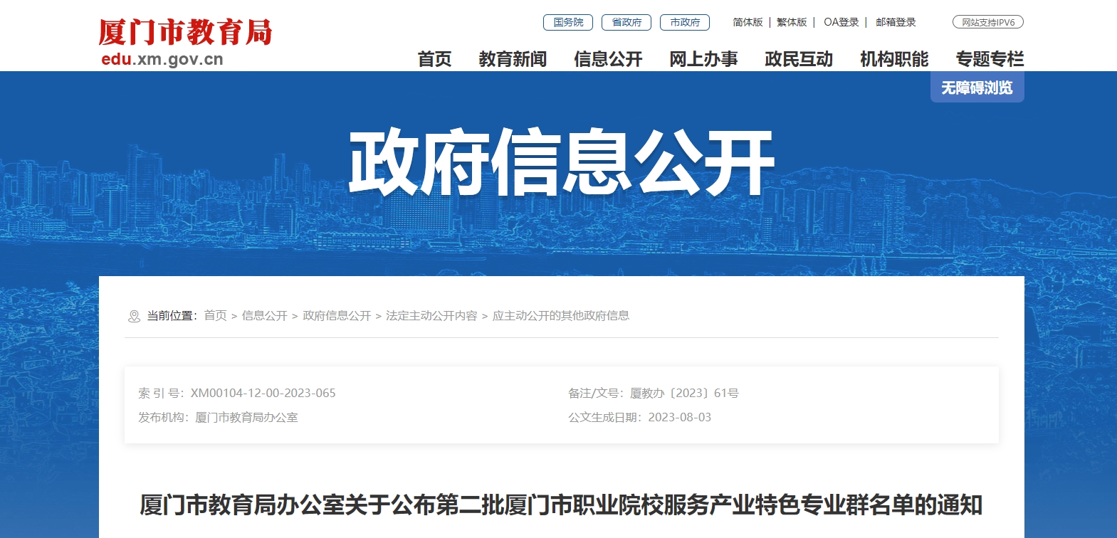 近日,廈門市教育局在其官網(wǎng)上發(fā)布《廈門市教育局辦公室關(guān)于公布廈門市應(yīng)用型本科高校高水平專業(yè)立項建設(shè)名單的通知》,根據(jù)《廈門市教育局關(guān)于實施應(yīng)用型本科高校高水平專業(yè)建設(shè)計劃的通知》(廈教發(fā)〔2023〕5......
