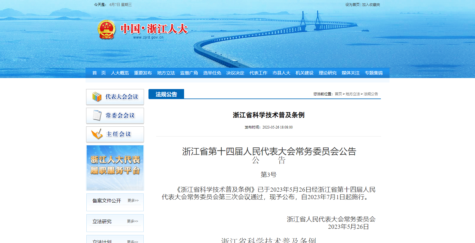 浙江人大發(fā)布浙江省科學(xué)技術(shù)普及條例,7月1日起施行