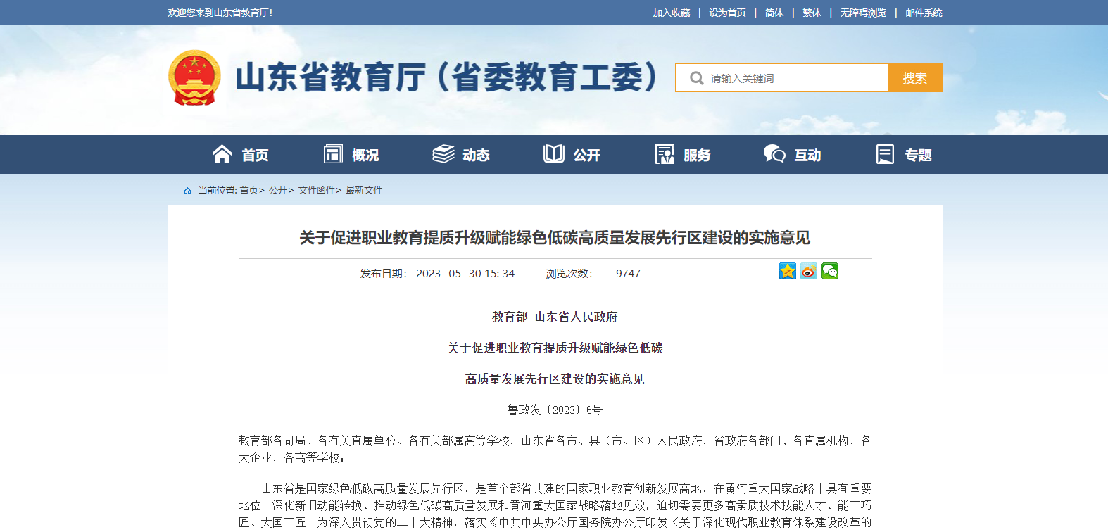 教育部 山東省人民政府雙部門(mén)發(fā)布關(guān)于促進(jìn)職業(yè)教育提質(zhì)升級(jí)賦能綠色低碳 高質(zhì)量發(fā)展先行區(qū)建設(shè)的實(shí)施意見(jiàn)