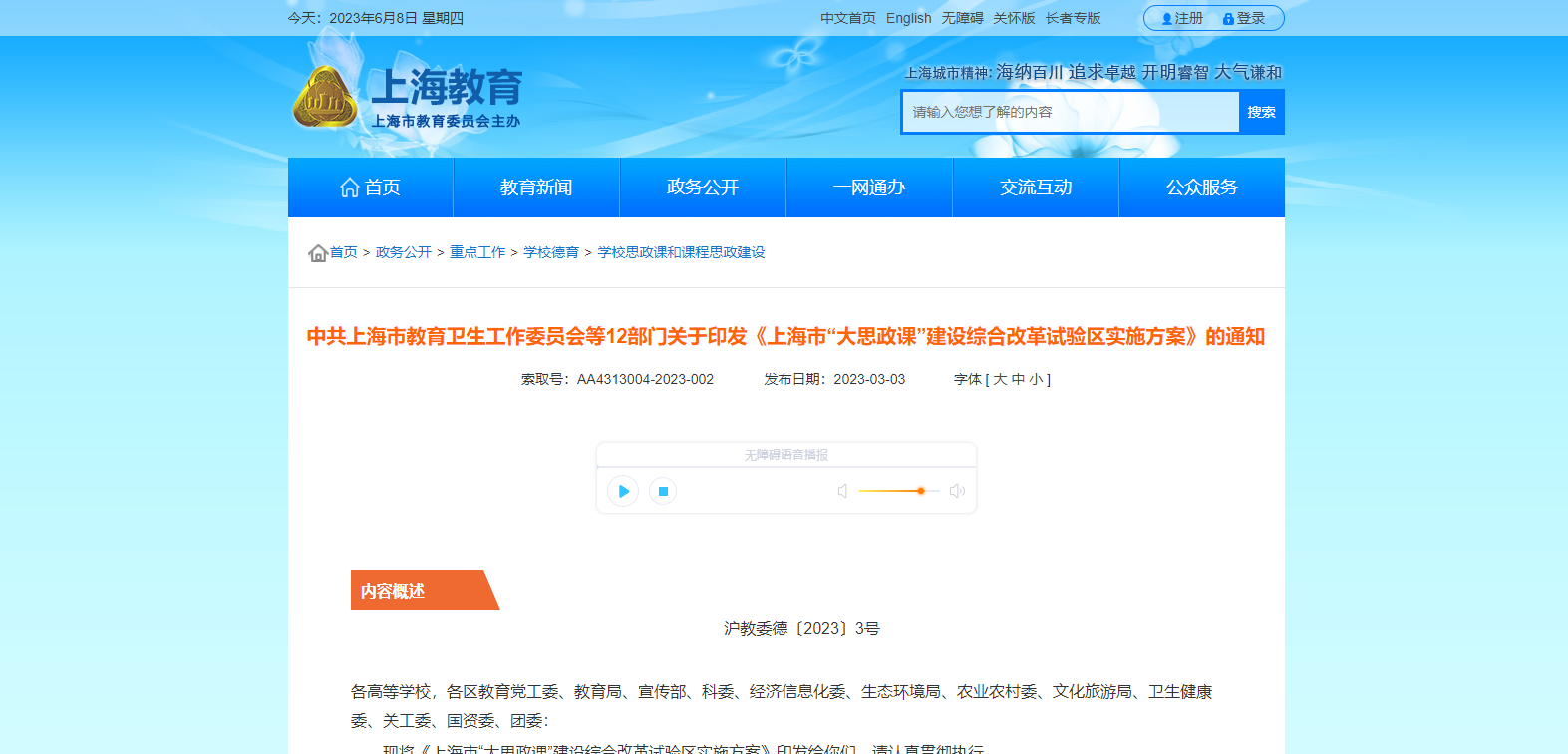 中共上海市教育衛(wèi)生工作委員會(huì)等12部門(mén)關(guān)于印發(fā)《上海市“大思政課”建設(shè)綜合改革試驗(yàn)區(qū)實(shí)施方案》的通知