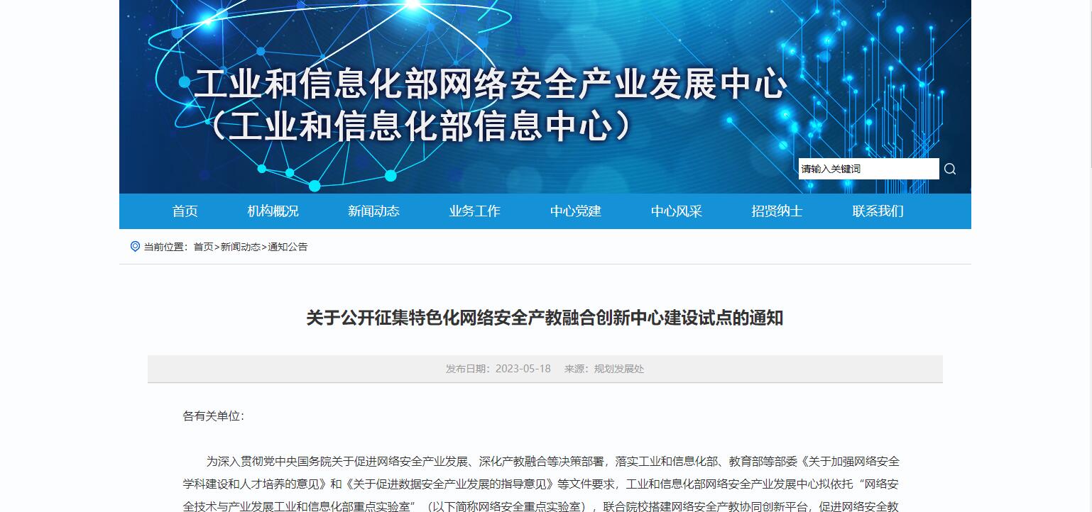 工信部發(fā)布關(guān)于公開征集特色化網(wǎng)絡(luò)安全產(chǎn)教融合創(chuàng)新中心建設(shè)試點的通知