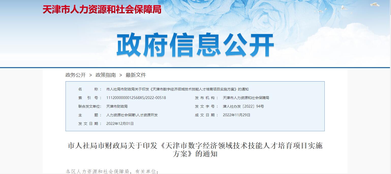 為強化現代化建設人才支撐,促進數字經濟和實體經濟深度融合,近日,天津市人社局、財政局聯合發(fā)布數字經濟領域技術技能人才培育項目實施方案。 天津市人社局相關負責人介紹,天津結合國家要求和本地實......