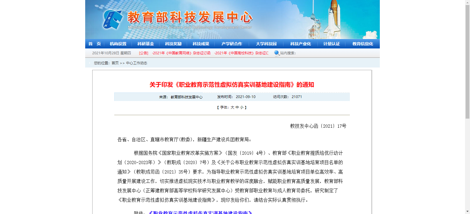 教育部科技發(fā)展中心發(fā)布《職業(yè)教育示范性虛擬仿真實(shí)訓(xùn)基地建設(shè)指南》