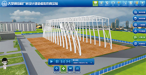 大型鋼結(jié)構(gòu)廠房設(shè)計(jì)建造仿真實(shí)驗(yàn)通過讓學(xué)生像“搭積木”一樣自行設(shè)計(jì)建造廠房,并借助3D漫游技術(shù)從不同視角觀察結(jié)構(gòu),幫助學(xué)生理解復(fù)雜鋼結(jié)構(gòu)體系的構(gòu)成,培養(yǎng)學(xué)生探究精神;在此基礎(chǔ)上,還可借助后臺(tái)分析軟件對(duì)所建結(jié)構(gòu)進(jìn)行靜力、自振和地震響應(yīng)分析,綜合內(nèi)力、變形及用鋼量等分析結(jié)果,幫助學(xué)生對(duì)設(shè)計(jì)合理性做出評(píng)判并提出改進(jìn)措施,提升學(xué)生的知識(shí)綜合運(yùn)用能力,形成學(xué)習(xí)反饋閉環(huán)。 |